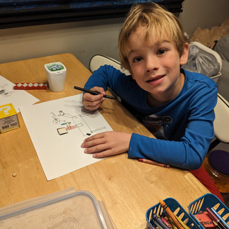 The kids swam in the pool, played Minecraft, and then drew pictures of what they had built or wanted to build in Minecraft.